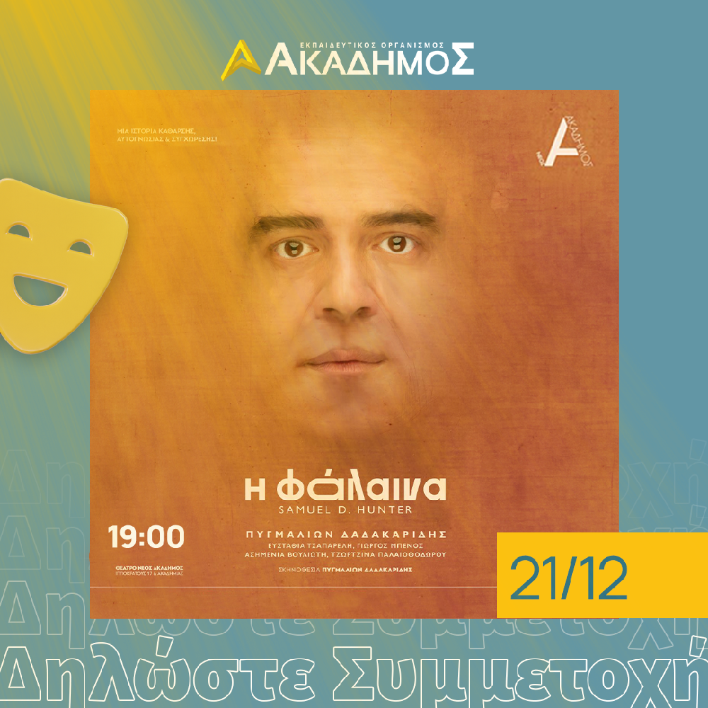 Σας προσκαλούμε να παρακολουθήσουμε μαζί την παράσταση «Η ΦΑΛΑΙΝΑ» (The Whale) του Σάμιουελ Ντι Χάντερ, στο θέατρο ΝΕΟΣ ΑΚΑΔΗΜΟΣ.